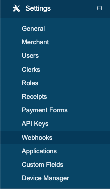 From your Dashboard, you can access these reports by clicking ‘Settings’ on the side menu bar, then 'Webhooks' in the dropdown.